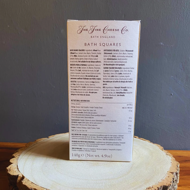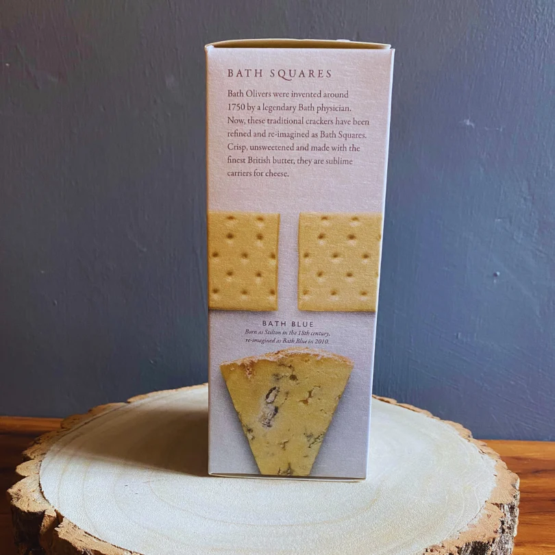 Bath Olivers were invented around 1750 by a legendary Bath physician. Now, these traditional crackers have been refined and re-imagined as Bath Squares. Crisp, unsweetened and made with the finest British butter, they are sublime carriers for cheese.