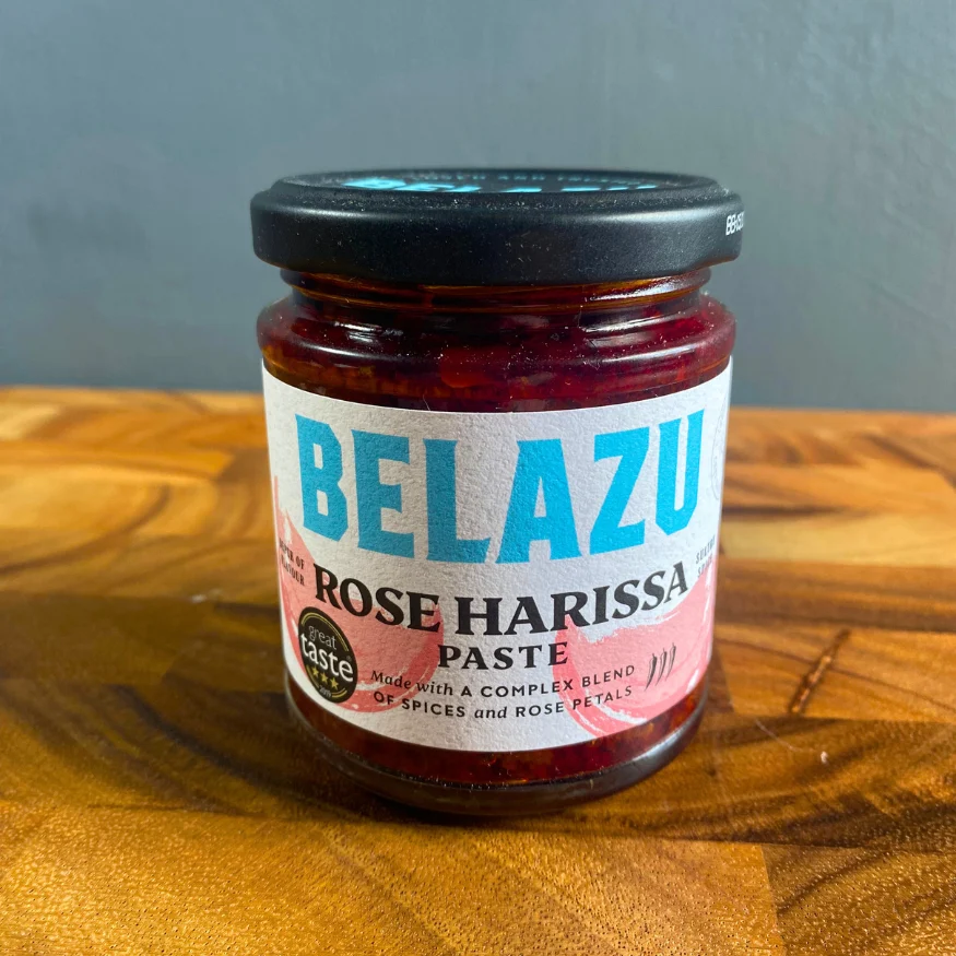 Belazu rose harissa is a blend of over thirteen spices including chilli, garlic and – of course – rose petals. This intensely aromatic rose harissa chilli paste is versatile and easy to use as a marinade, in dressings, dips & sauces. We enjoy it spread on toast topped with a poached egg, spooned over hummous, or rubbed into a chicken before roasting.