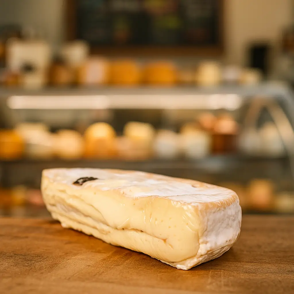This is a raw, soft unpasteurised cheese made with milk form Montebeliarde cattle. It is covered with a bloomy rind, which is the result the cheese being inoculated with Penicillium Candidum mould. As the cheese ages, the rind develops red or brown patches. It is ripe when approximately half of the straw coloured pate is ripe and soft.