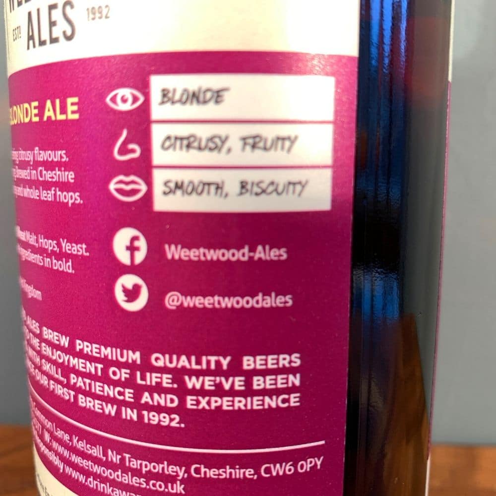 Blonde, Citrusy, Fruity, Smooth, Biscuity. SIBA – Assured Independent British Craft Brewer. Smooth and balanced with refreshing citrusy flavours. Very blonde and very easy-drinking. Brewed in Cheshire using the finest quality malted barley and whole leaf hops. Weetwood Ales are a small brewery located outside the village of Kelsall in Cheshire. They produce quality and distinctive cask conditioned beers and have been brewing for over 20  years.