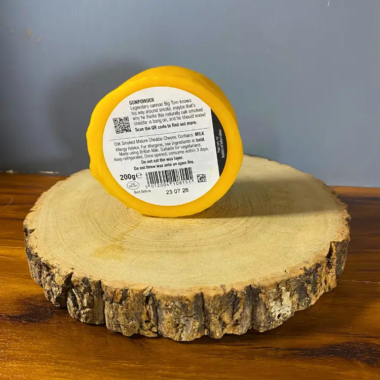 A veteran of the battlefield, Big Tom, known as “Gunpowder” to the regiment, knows his way around smoke, maybe that’s why he likes our naturally smoked cheddar. The gentle smokiness from seasoned oak fires adds a delicious fullness and tang which Tom says is bang on – and he should know!
