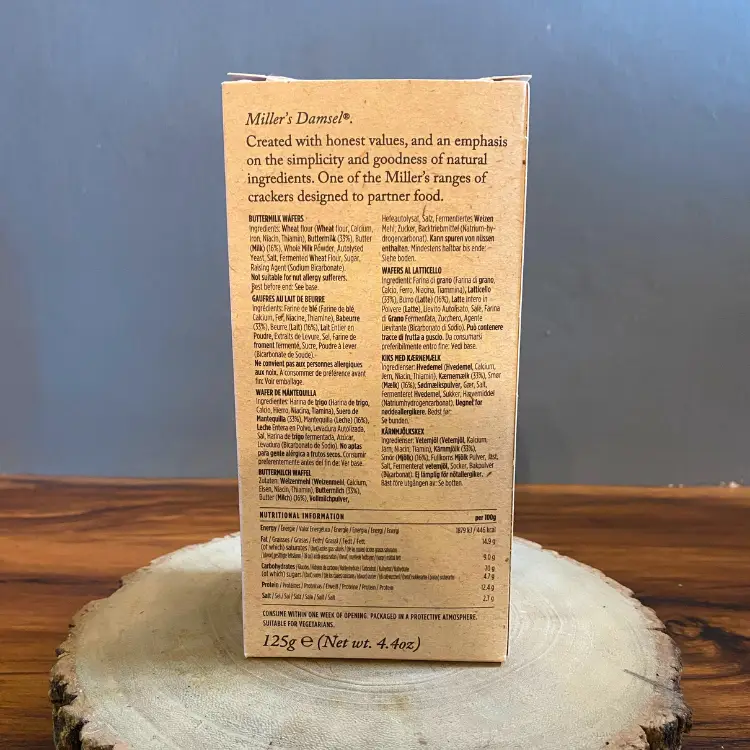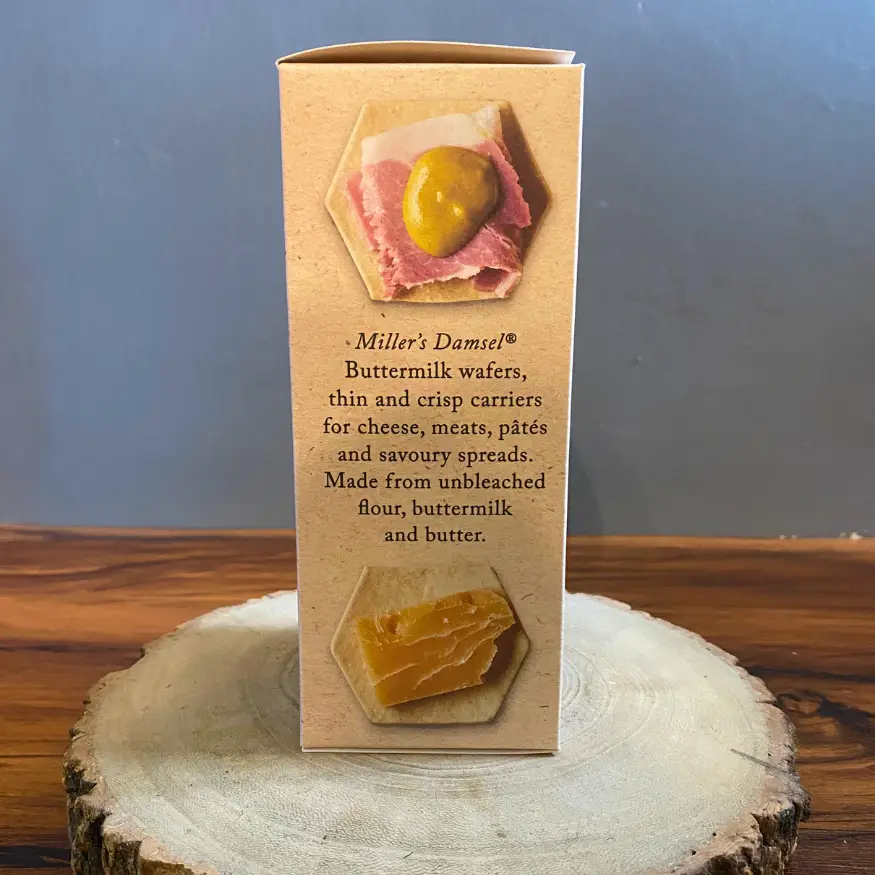 Miller’s Damsel Buttermilk wafers, thin and crisp carriers for cheese, meats, pâtés and savoury spreads.