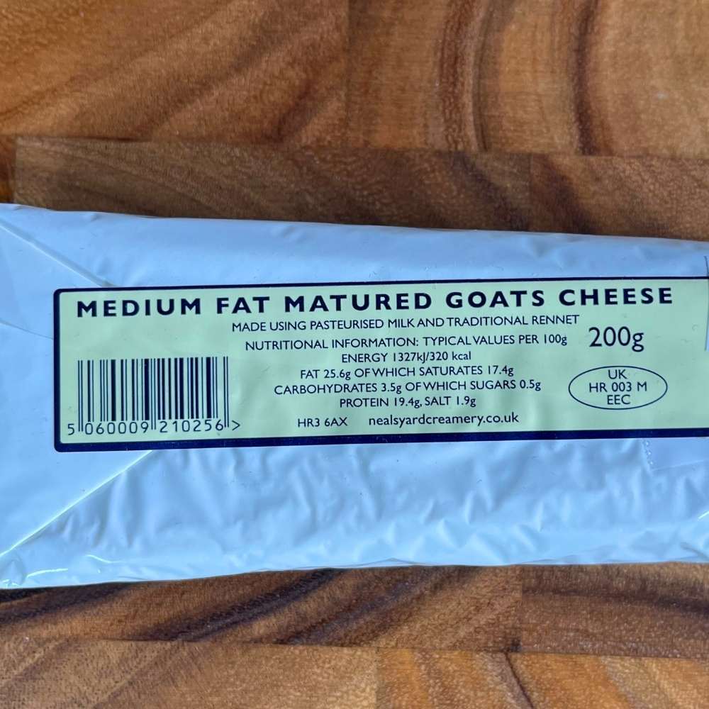 This English pasteurized goat’s milk cheese is made with animal rennet at Neal’s Yard Creamery in Herefordshire by Charlie Westhead and his dedicated team of cheese makers.