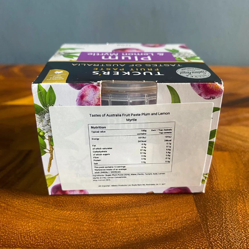 Unleash an explosion of flavours with Tastes of Australia Plum and Lemon Myrtle fruit paste, a delightful fusion of sweet and tangy that will elevate your cheese and cracker experience.