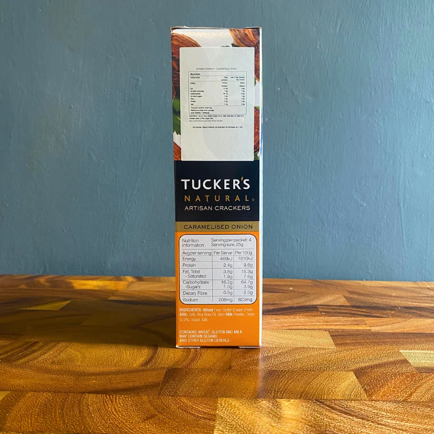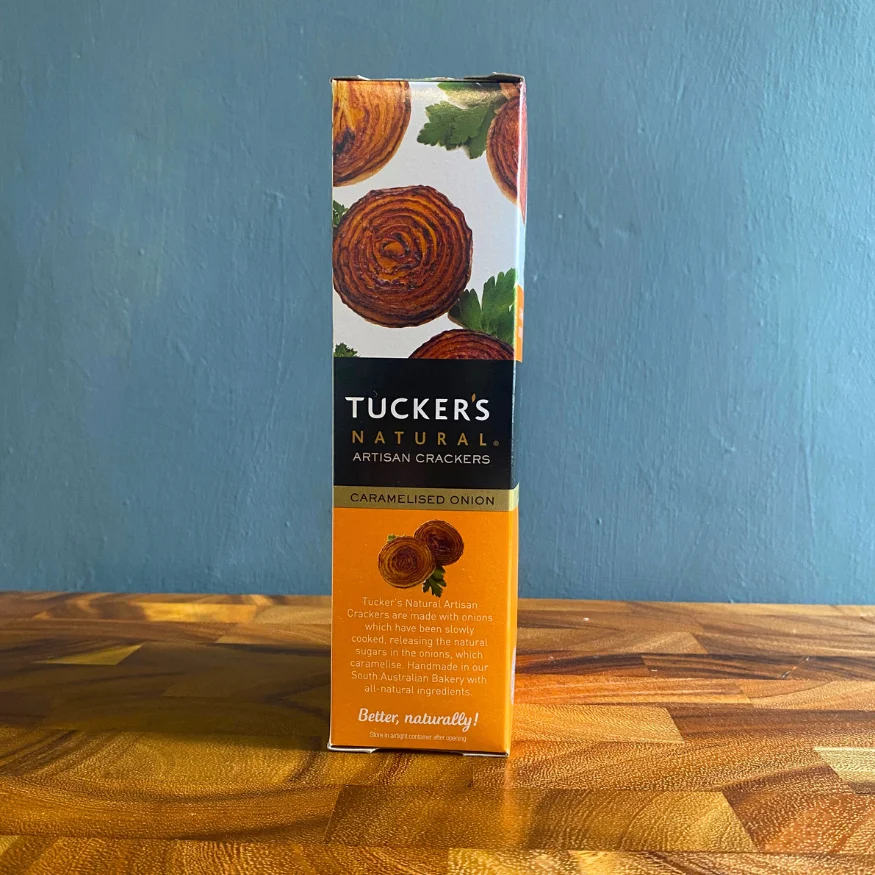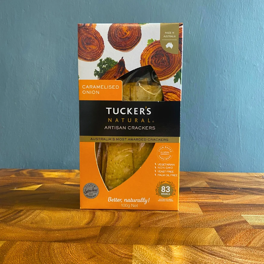Tucker’s Natural Caramelised Onion Artisan Crackers are infused with the rich, savoury sweetness of caramelised onions.