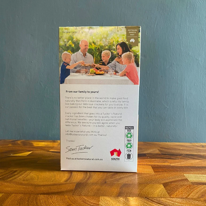 Tucker’s produce great tasting premium Gourmet Crackers that are all natural and hand baked. Tuckers Crackers are GMO free, contain no artificial preservatives, flavours or colourings, are free from yeast, soy and MSG.